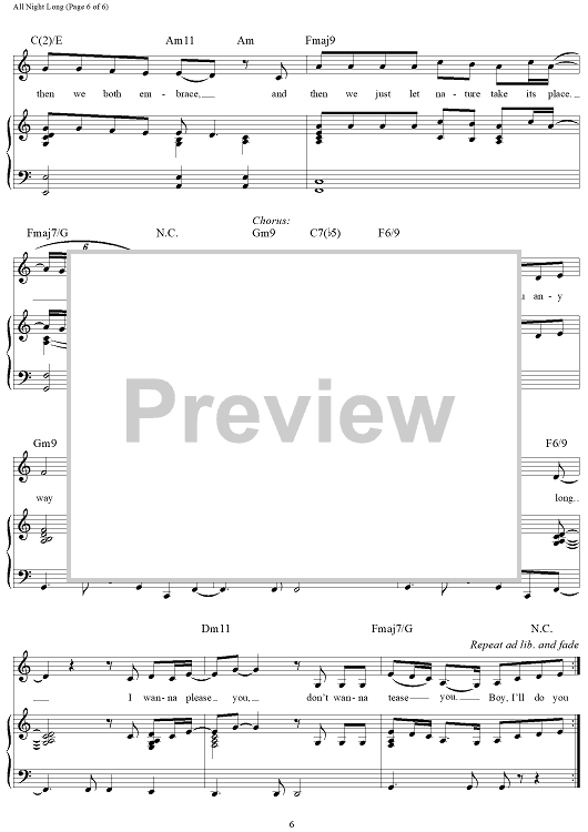 Digital Sheet Music for All Night Long by Babyface, SWV scored for Piano/Vocal/Chords; id:276771