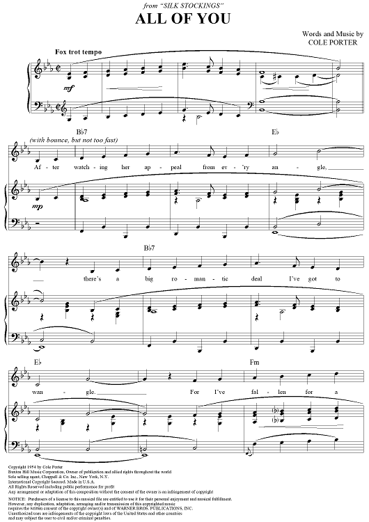 Digital Sheet Music for All of You by Cole Porter scored for Piano/Vocal/Chords; id:316990