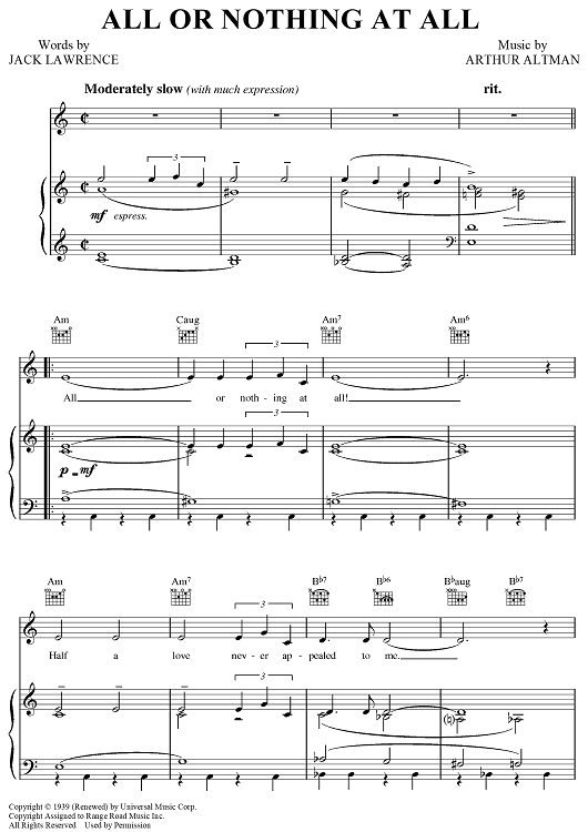 "All Or Nothing At All" Sheet Music by Arthur Altman