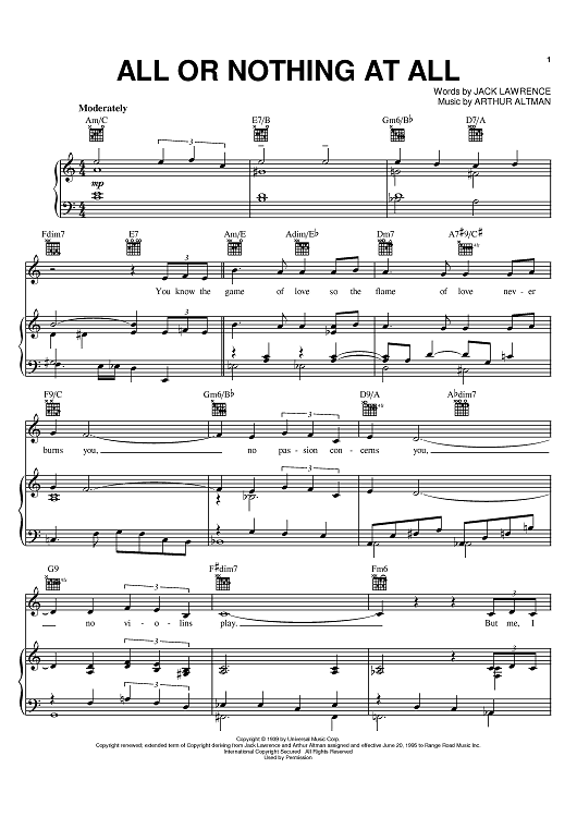 Digital Sheet Music for All Or Nothing At All by Frank Sinatra, Ella Fitzgerald, Arthur Altman, Jack Lawrence, Harry James scored for Piano/Vocal/Chords; id:381044