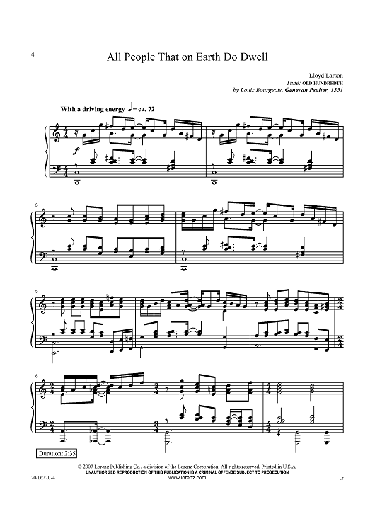 Digital Sheet Music for All People That on Earth Do Dwell by Louis Bourgeois, Lloyd Larson scored for Piano Solo; id:433913