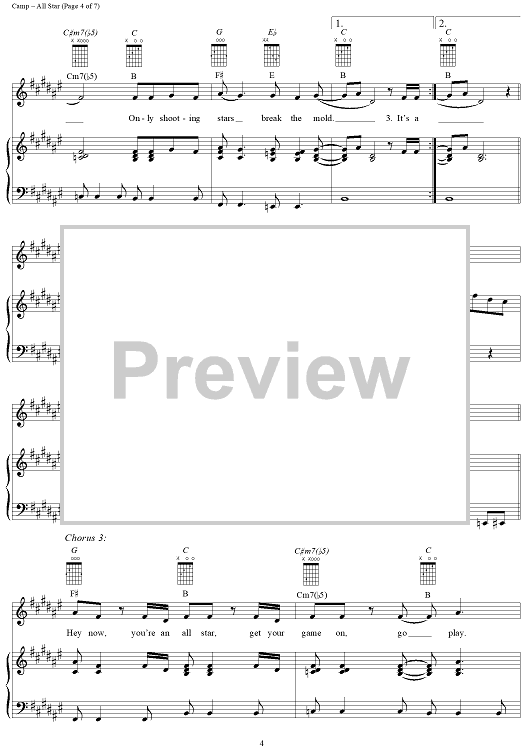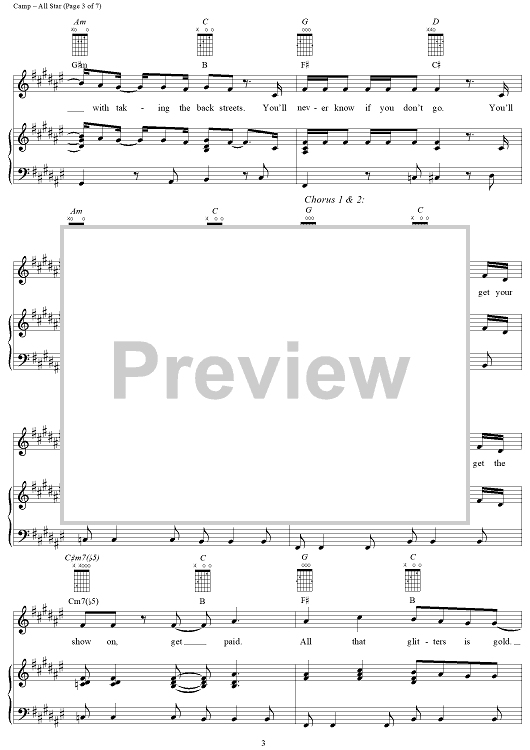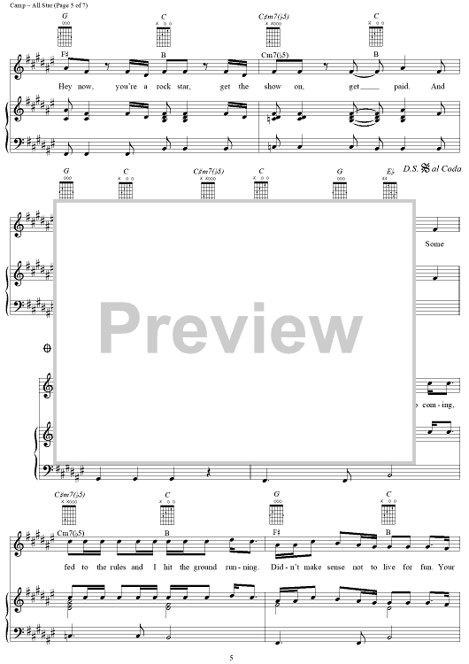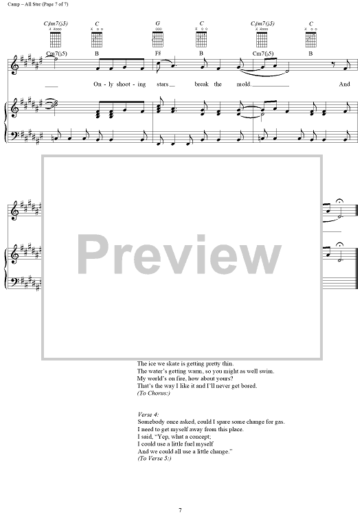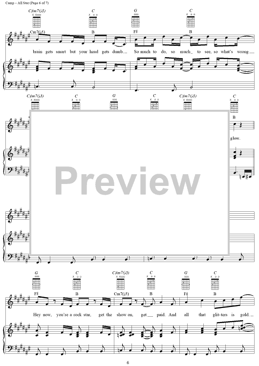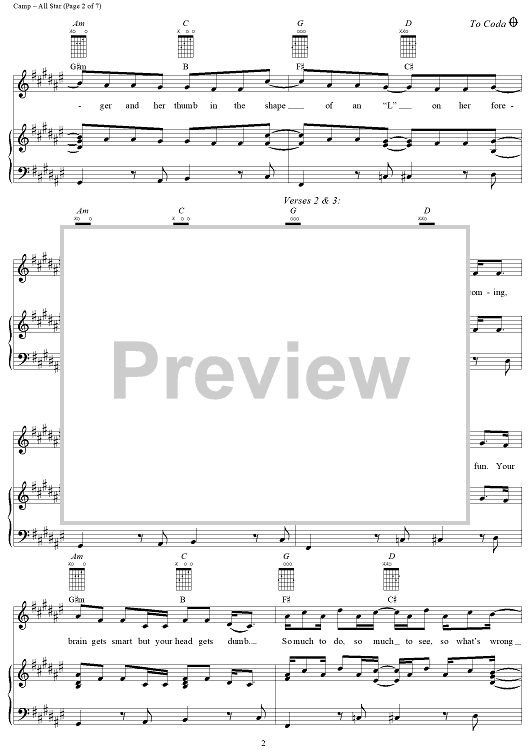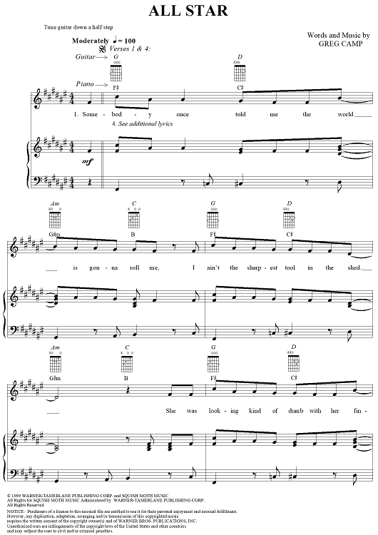 Digital Sheet Music for All Star by Smash Mouth, Greg Camp scored for Piano/Vocal/Chords; id:118743