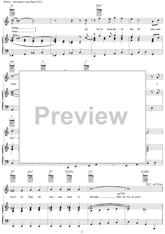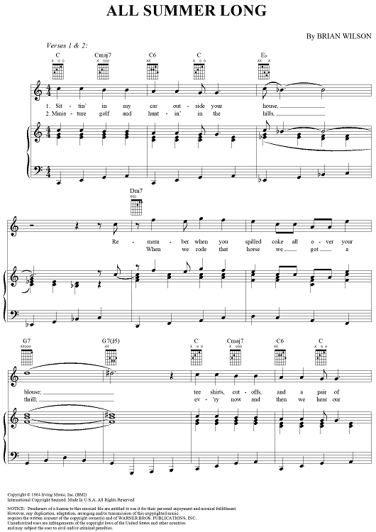 Digital Sheet Music for All Summer Long by Brian Wilson, The Beach Boys scored for Piano/Vocal/Chords; id:263895
