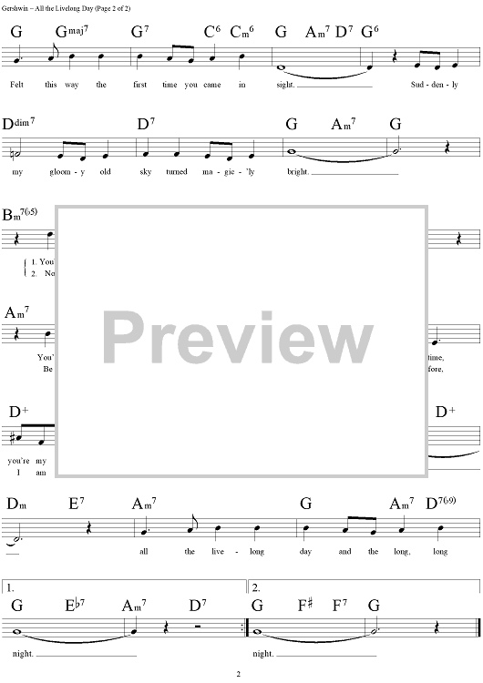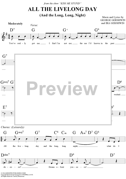Digital Sheet Music for All the Live Long Day (And the Long, Long Night) by , George Gershwin, Ira Gershwin scored for Lead Sheet; id:283388