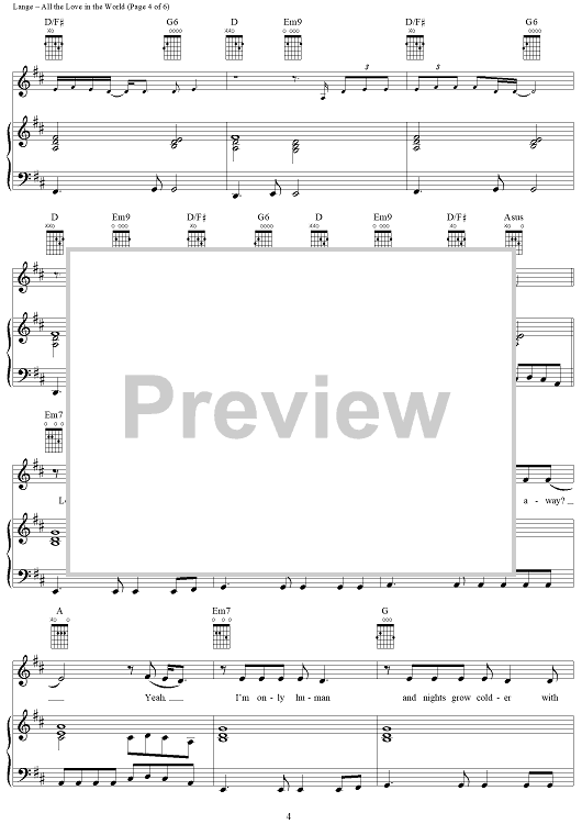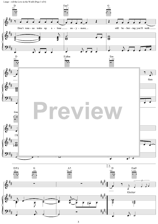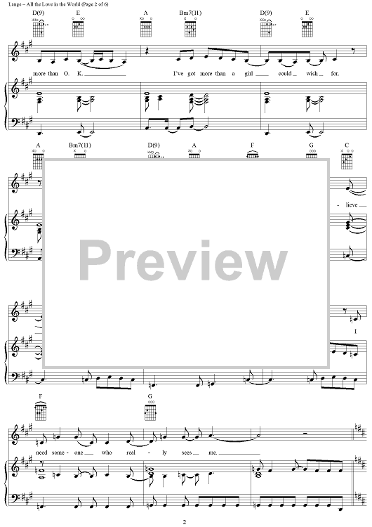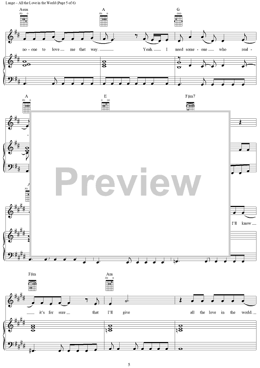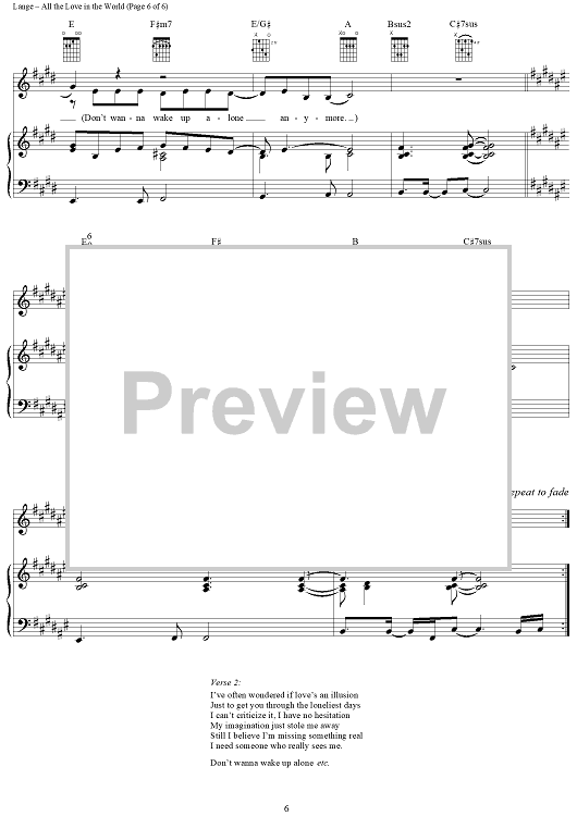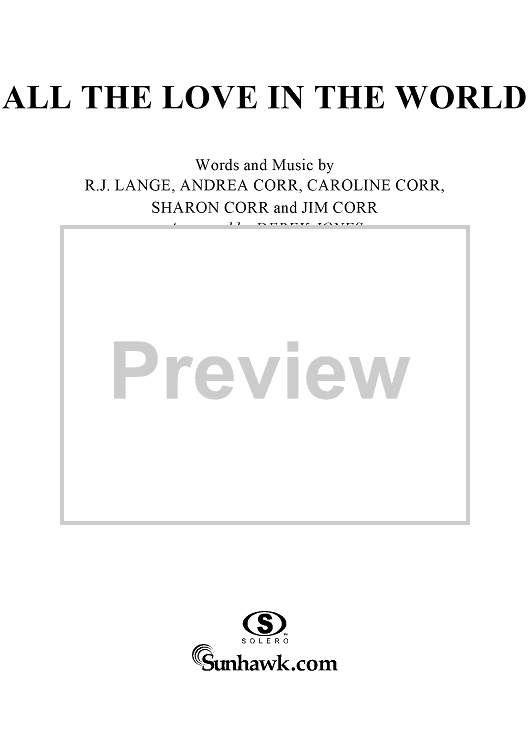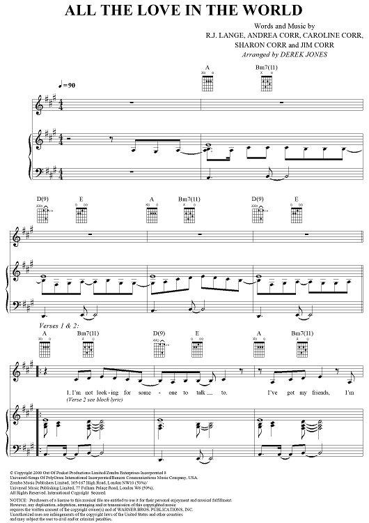 Digital Sheet Music for All the Love in the World by The Corrs, Derek Jones, Robert Lange, Sharon Corr, Caroline Corr, Andrea Corr, Jim Corr scored for Piano/Vocal/Chords; id:287323