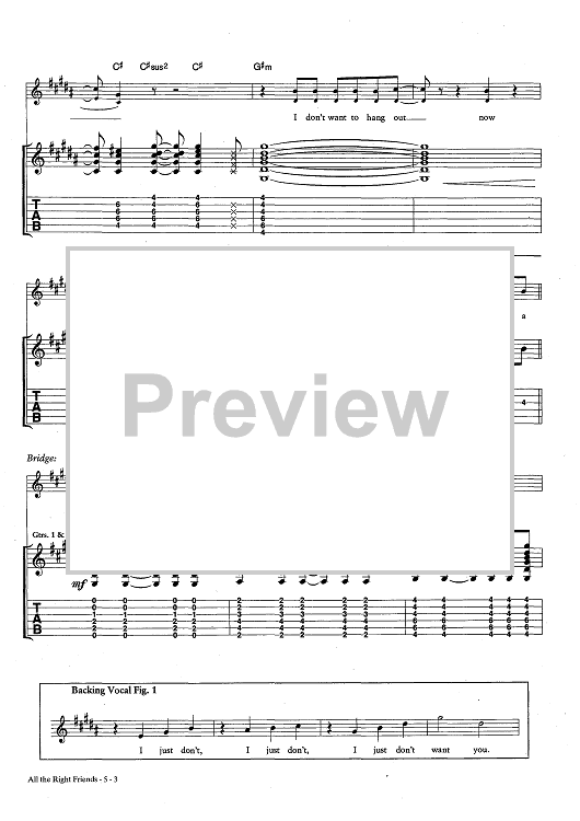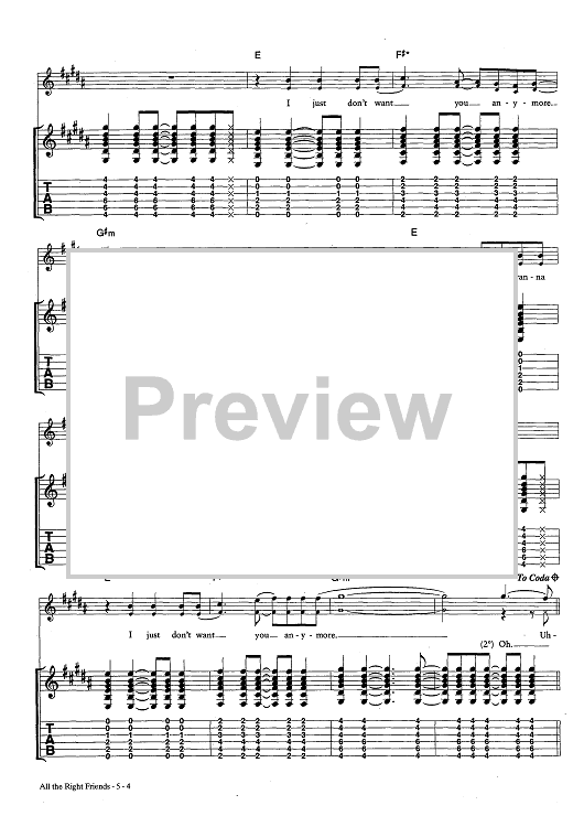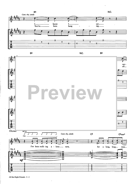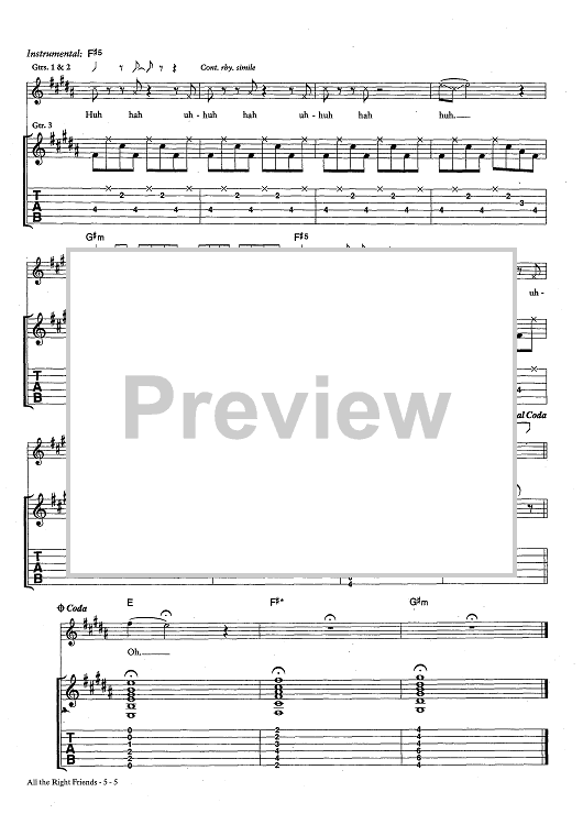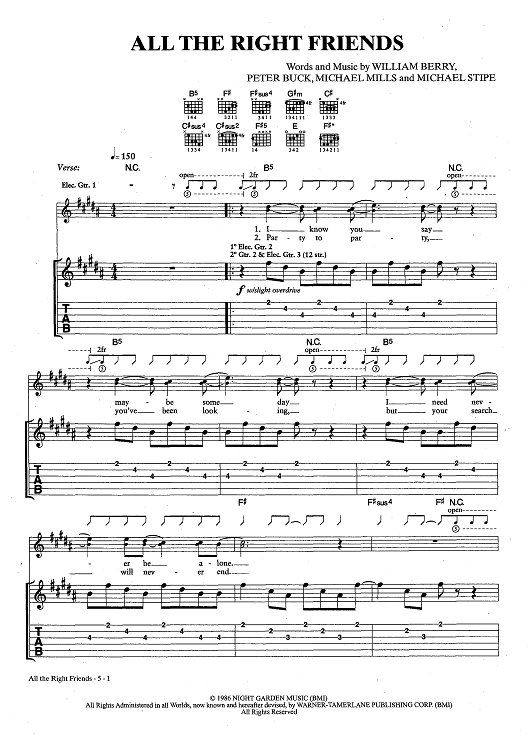 Digital Sheet Music for All The Right Friends by R.E.M., Michael Stipe, Peter Buck, Mike Mills, Bill Berry scored for Guitar Tab/Vocal/Chords; id:436619