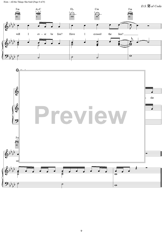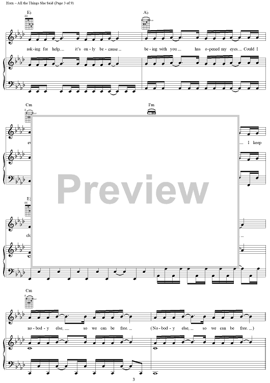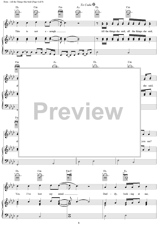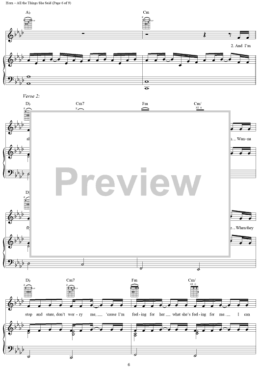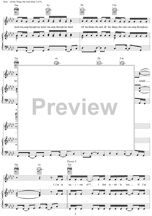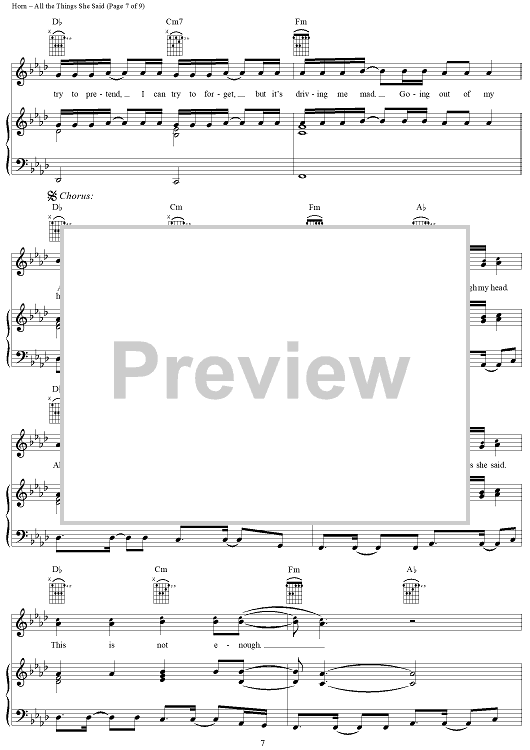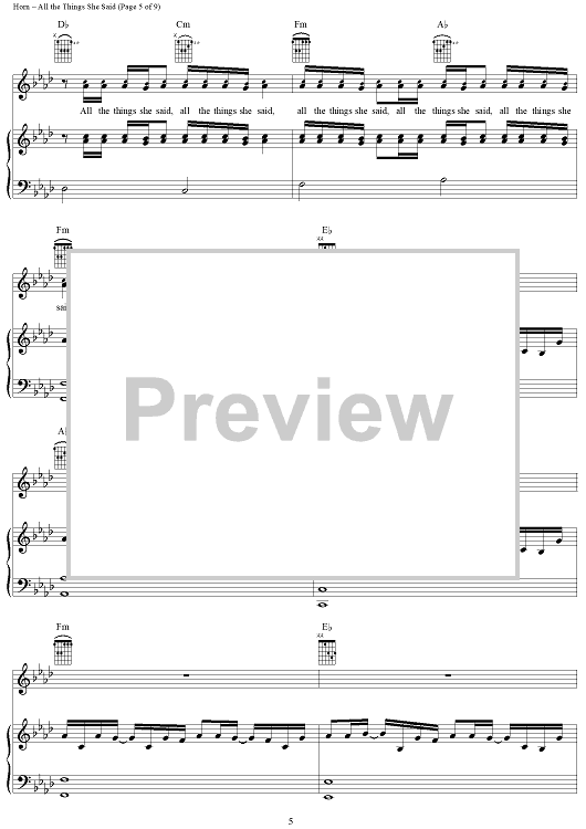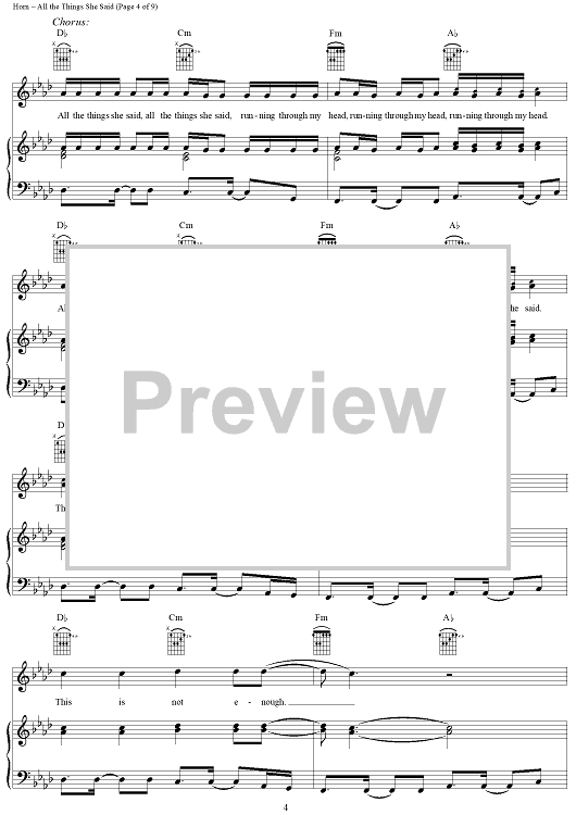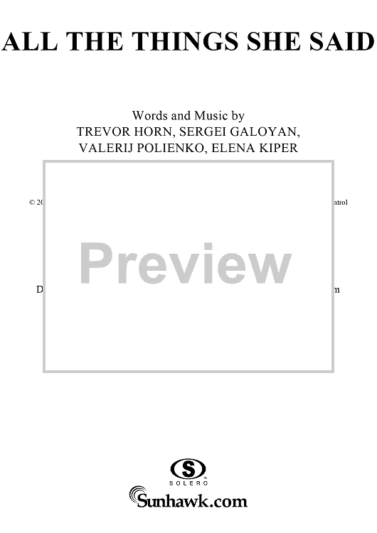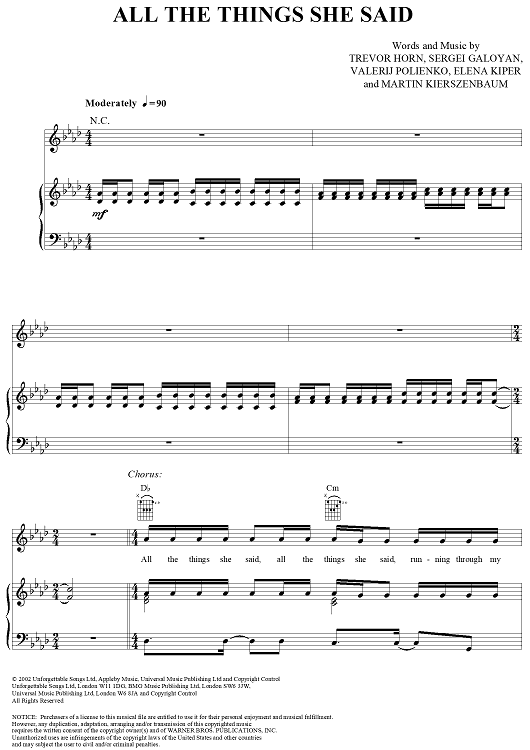 Digital Sheet Music for All the Things She Said by Trevor Horn, Sergei Galoyan, Valerij Polienko, Elena Kiper, Martin Kierszenbaum, T. A. T. u. scored for Piano/Vocal/Chords; id:295031