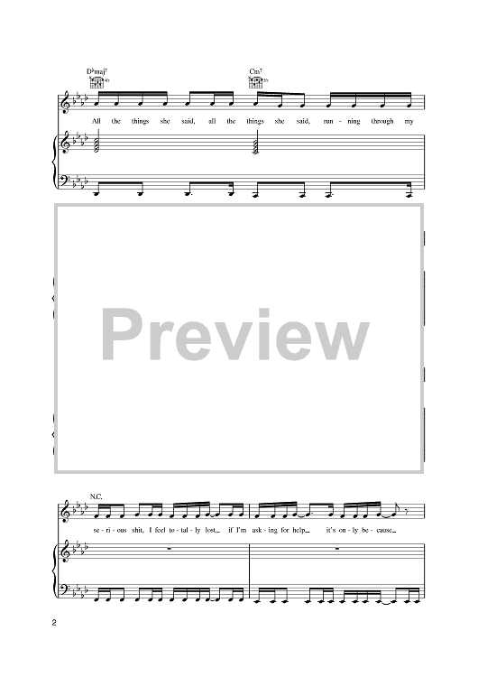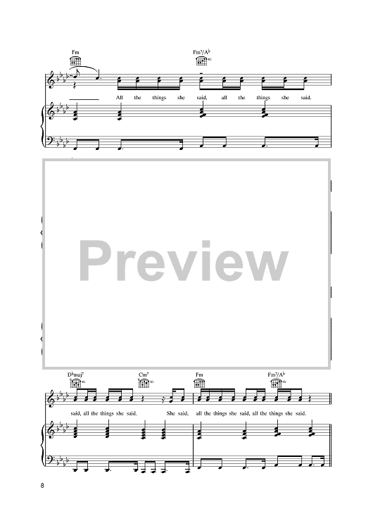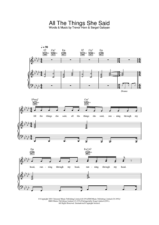Digital Sheet Music for All The Things She Said by Trevor Horn, Sergei Galoyan, Martin Kierszenbaum, T. A. T. u. scored for Piano/Vocal/Chords; id:385400