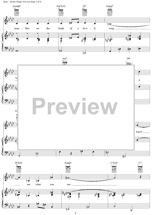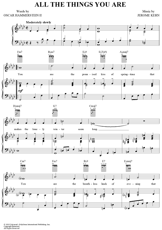 Digital Sheet Music for All the Things You Are by Jerome Kern, Oscar Hammerstein II scored for Piano/Vocal/Chords; id:289224