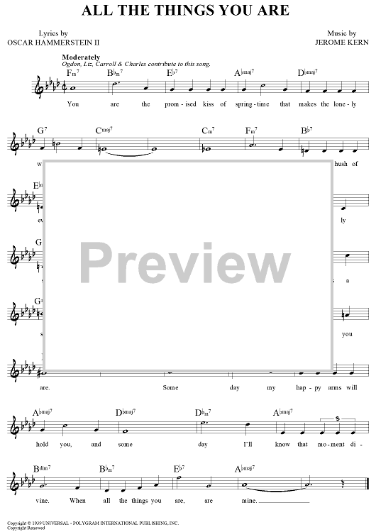 Digital Sheet Music for All The Things You Are by Jerome Kern, Oscar Hammerstein II scored for Lead Sheet; id:460942