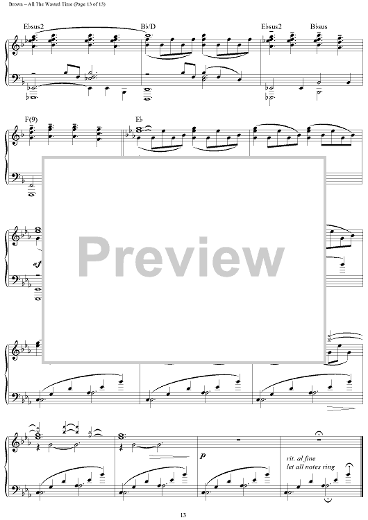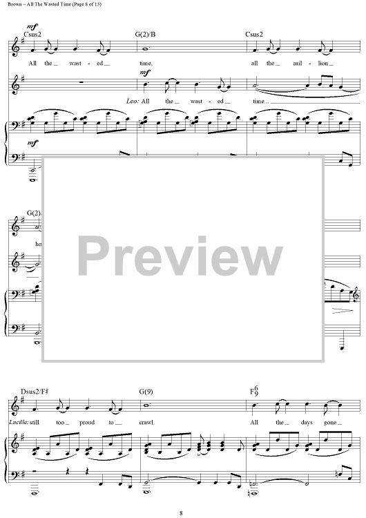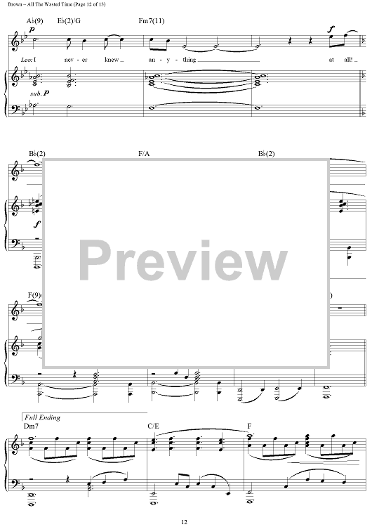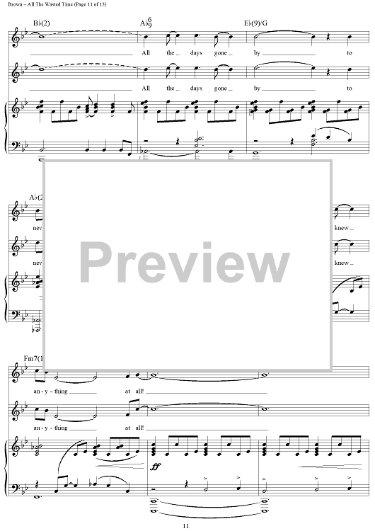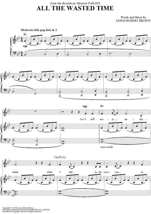 Digital Sheet Music for All The Wasted Time by Jason Robert Brown scored for Piano/Vocal/Chords; id:409908