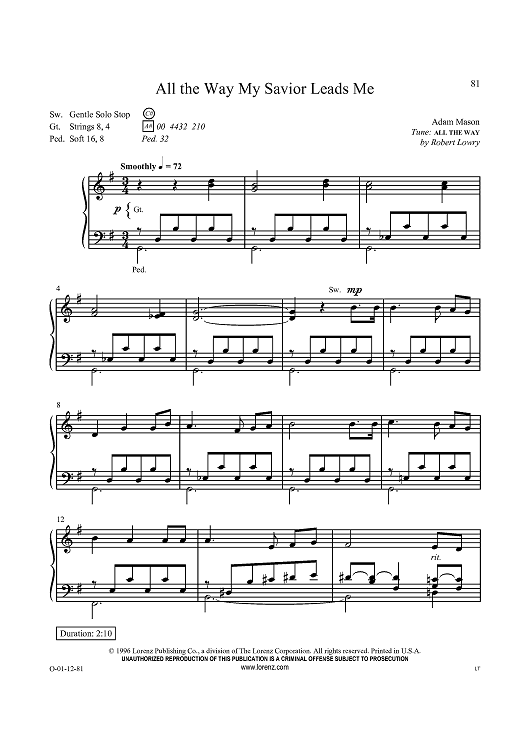 Digital Sheet Music for All the Way My Savior Leads Me by , Robert Lowry, Adam Mason scored for Organ Solo; id:434333