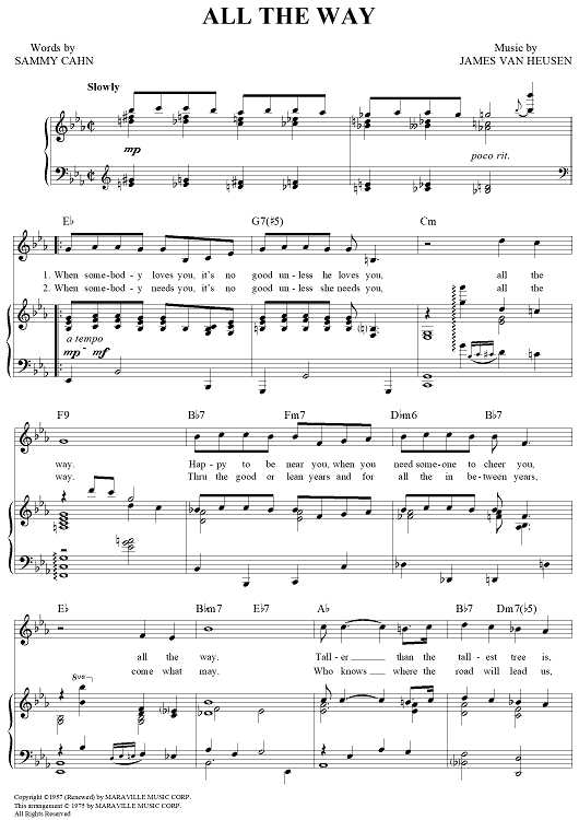 Digital Sheet Music for All the Way by Frank Sinatra, Sammy Cahn, Jimmy Van Heusen scored for Piano/Vocal/Chords; id:111808