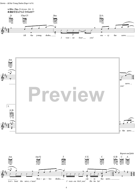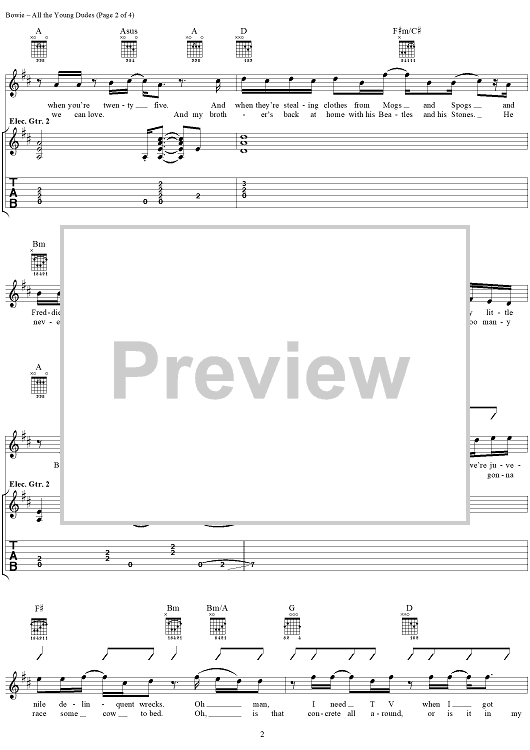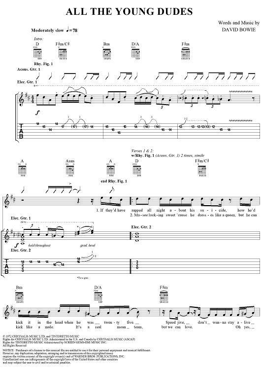 "All the Young Dudes" Sheet Music by Mott the Hoople