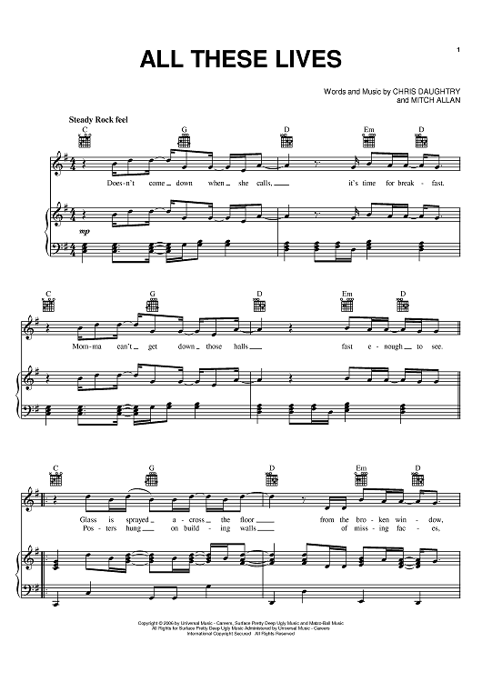 Digital Sheet Music for All These Lives by Mitch Allan, Chris Daughtry, Daughtry scored for Piano/Vocal/Chords; id:401158