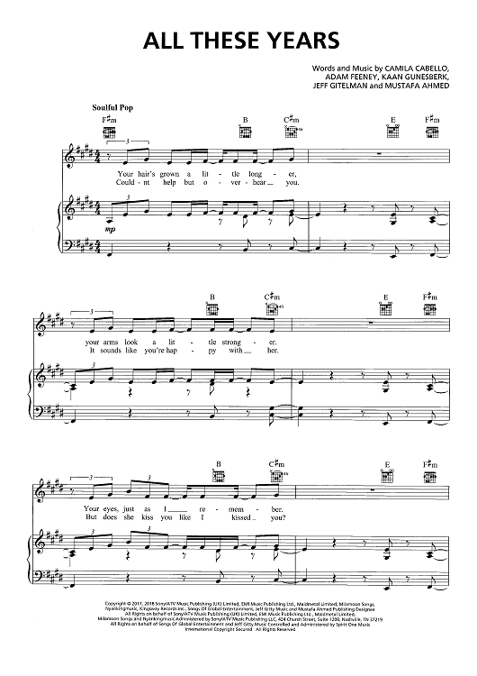 Digital Sheet Music for All These Years by Camila Cabello, Adam Feeney, Kaan Gunesberk, Jeff Gitelman, Mustafa Ahmed scored for Piano/Vocal/Chords; id:466313