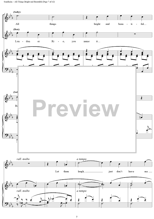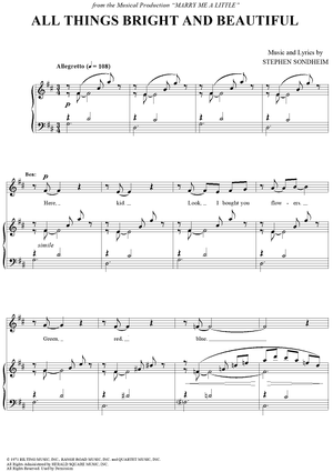 Digital Sheet Music for All Things Bright And Beautiful by Stephen Sondheim scored for Piano/Vocal; id:258746
