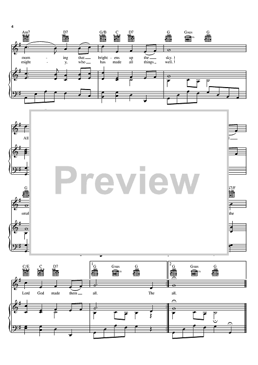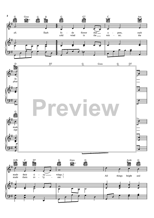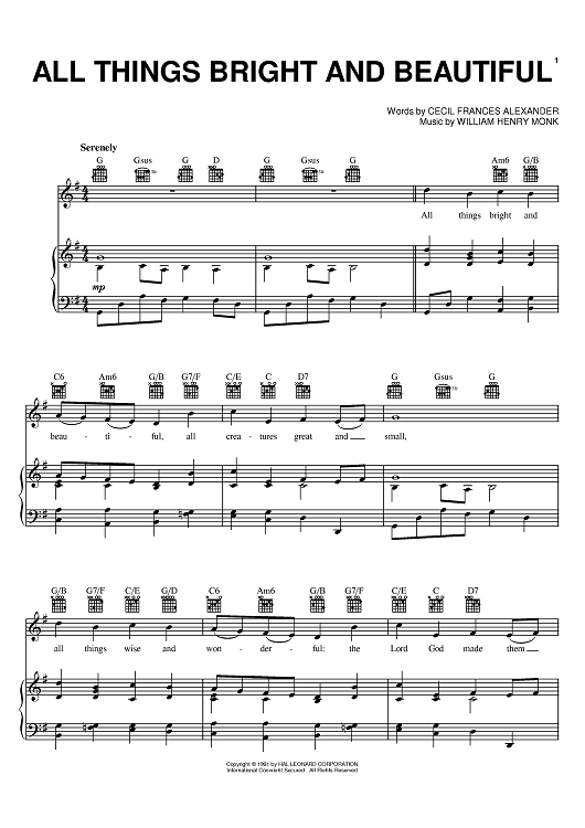 Digital Sheet Music for All Things Bright And Beautiful by Cecil F. Alexander, William Henry Monk scored for Piano/Vocal/Chords; id:397627