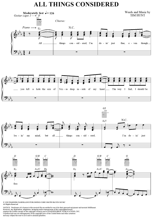 "All Things Considered" Sheet Music by Yankee Grey