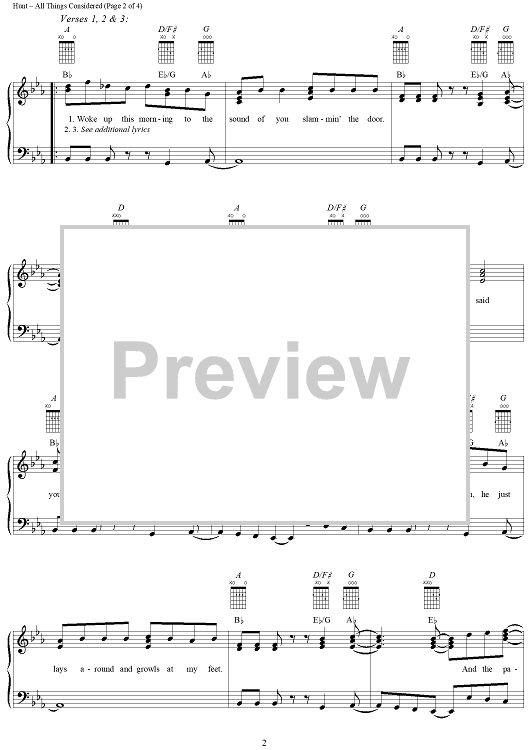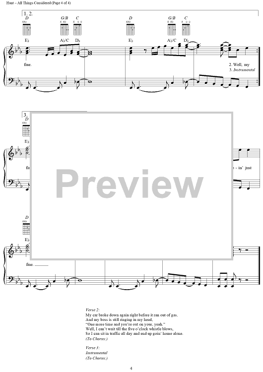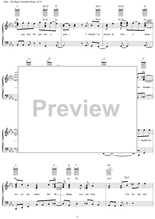 Digital Sheet Music for All Things Considered by Tim Hunt, Yankee Grey scored for Piano/Vocal/Chords; id:124092