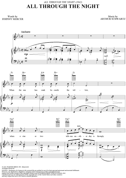 Digital Sheet Music for All Through the Night by Johnny Mercer, Arthur Schwartz scored for Piano/Vocal/Chords; id:235839