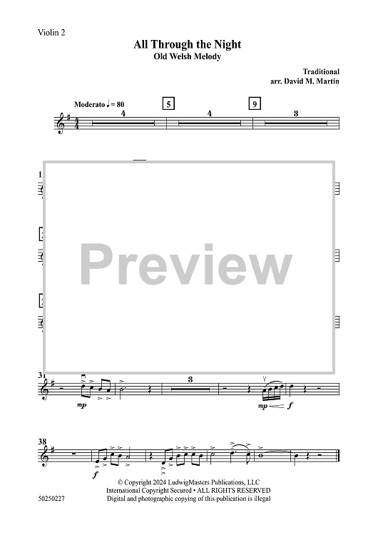Digital Sheet Music for All Through the Night - Violin 2 by David Martin, Traditional scored for Orchestra; id:504122