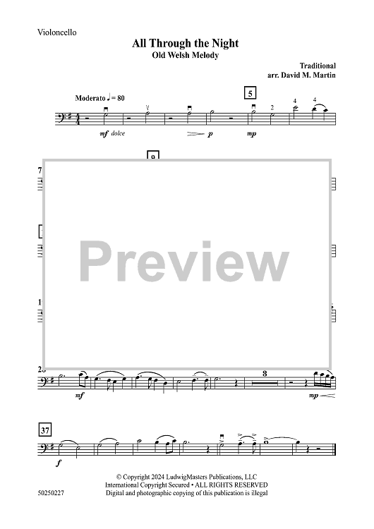 Digital Sheet Music for All Through the Night - Violoncello by David Martin, Traditional scored for Orchestra; id:504124