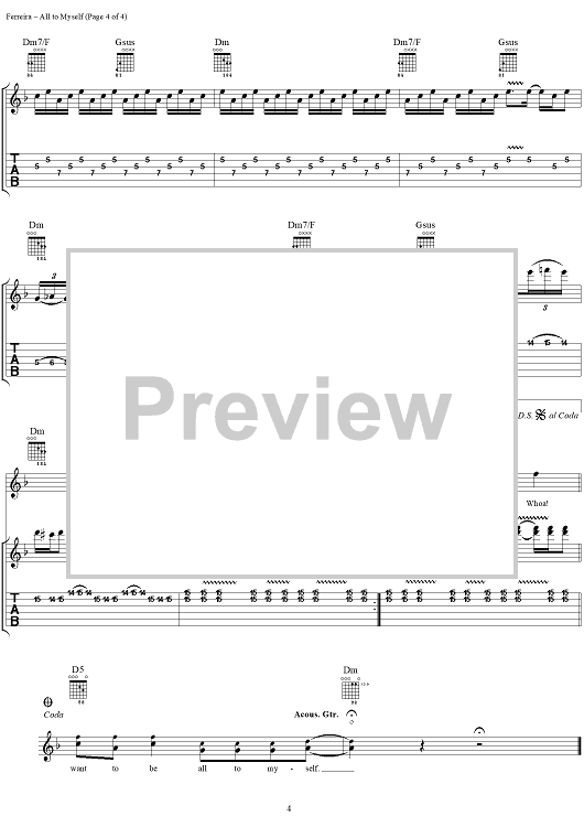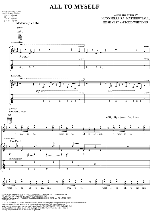 Digital Sheet Music for All to Myself by Todd Whitener, Tantric, Hugo Ferreira, Matthew Taul, Jesse Vest scored for Guitar Tab/Vocal; id:287753