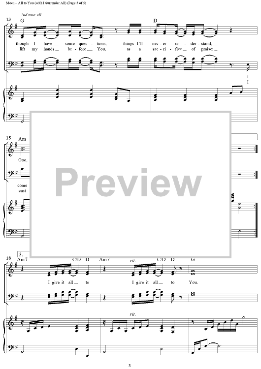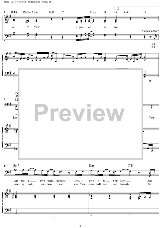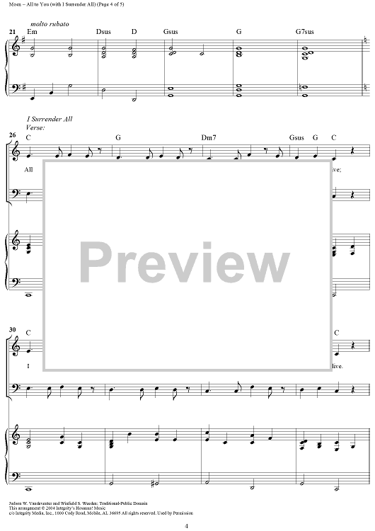 Digital Sheet Music for All To You (with I Surrender All) by Don Moen scored for Mixed Chorus/Piano; id:308942