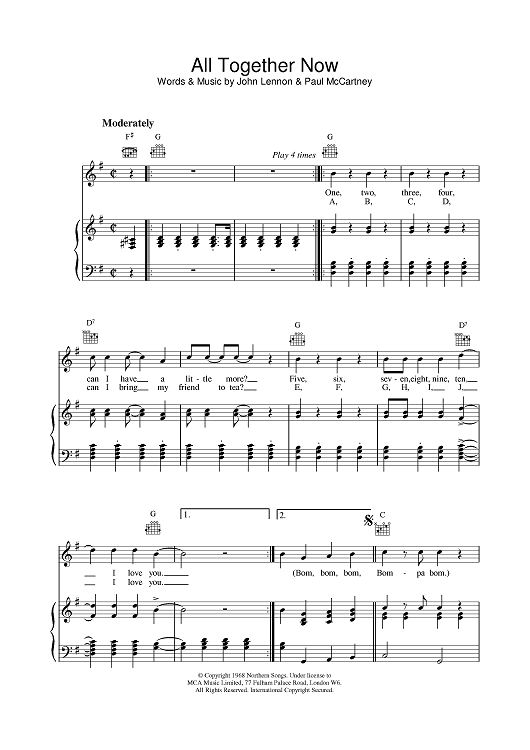 Digital Sheet Music for All Together Now by Paul McCartney, The Beatles, John Lennon scored for Piano/Vocal/Chords; id:377342