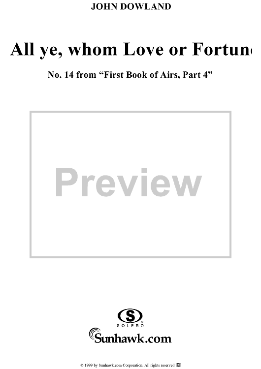 "All ye, whom Love or Fortune - No. 14 from "First Book of Airs, Part 2"" Sheet Music by John Dowland
