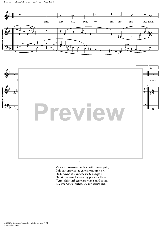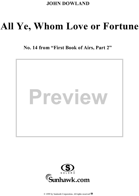 "All ye, whom Love or Fortune - No. 14 from "First Book of Airs, Part 2"" Sheet Music by John Dowland