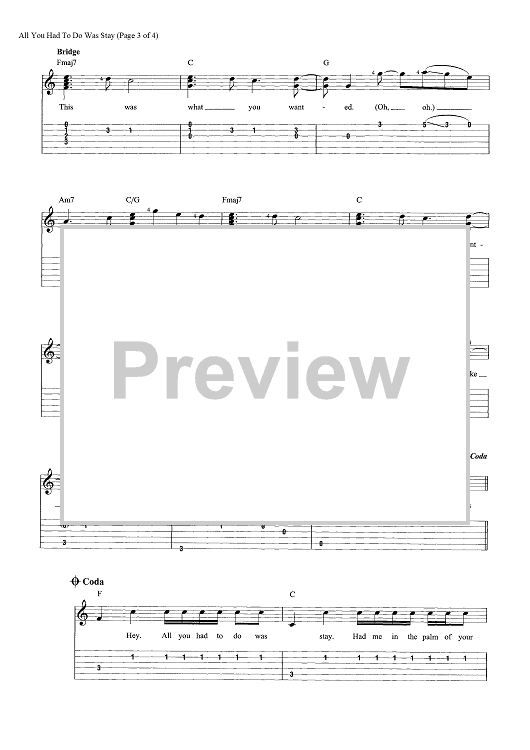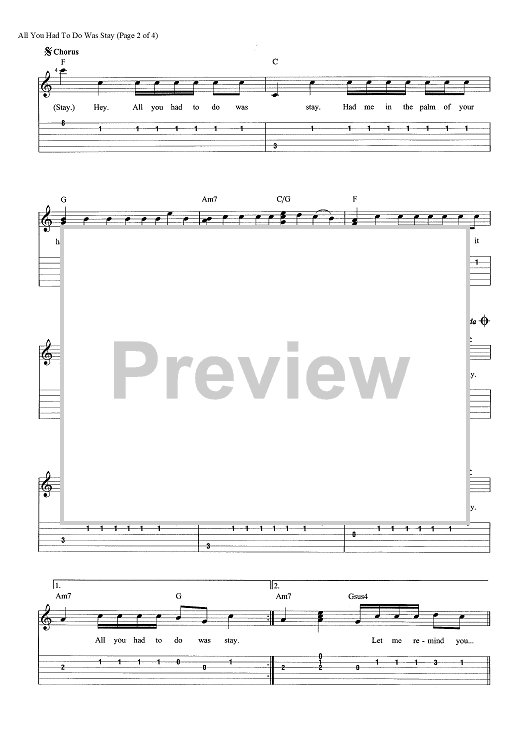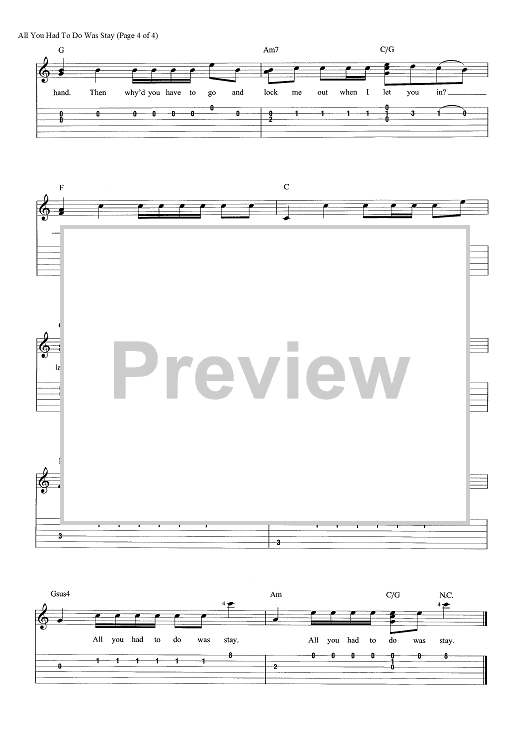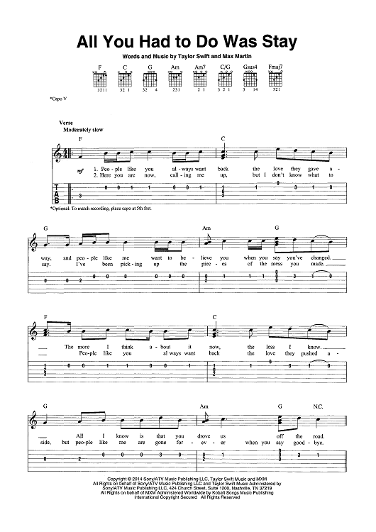 Digital Sheet Music for All You Had To Do Was Stay by Max Martin, Taylor Swift scored for Guitar Tab/Vocal/Chords; id:456847