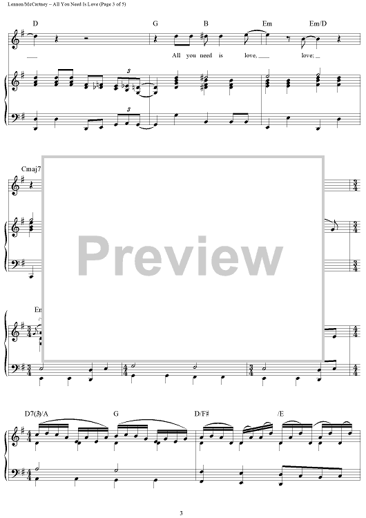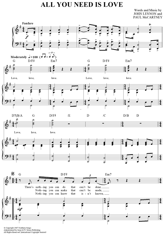 Digital Sheet Music for All You Need Is Love by Paul McCartney, The Beatles, John Lennon scored for Piano/Vocal/Chords; id:362914