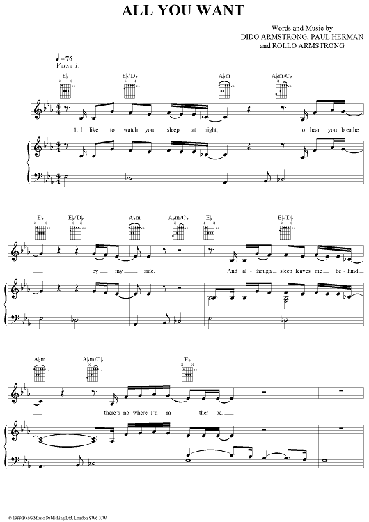 Digital Sheet Music for All You Want by Dido Armstrong, Paul Herman, Dido, Rollo Armstrong scored for Piano/Vocal/Chords; id:285327