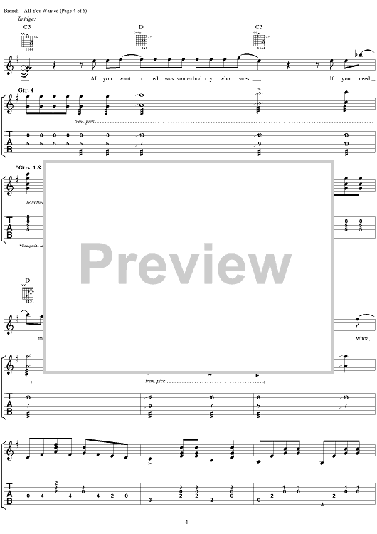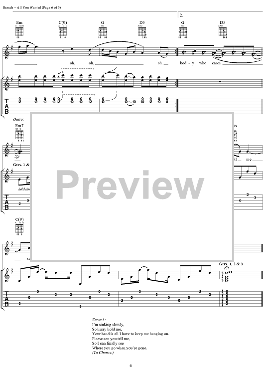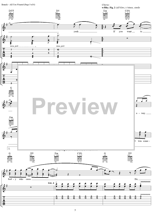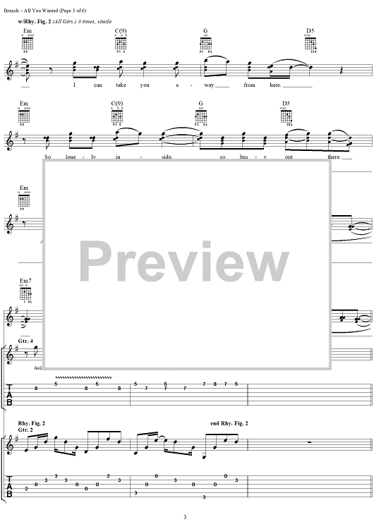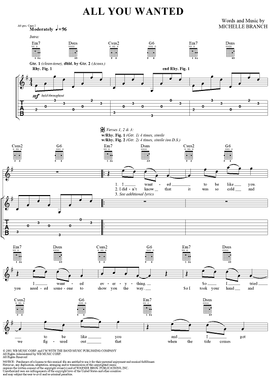 Digital Sheet Music for All You Wanted by Michelle Branch scored for Guitar Tab/Vocal; id:293168