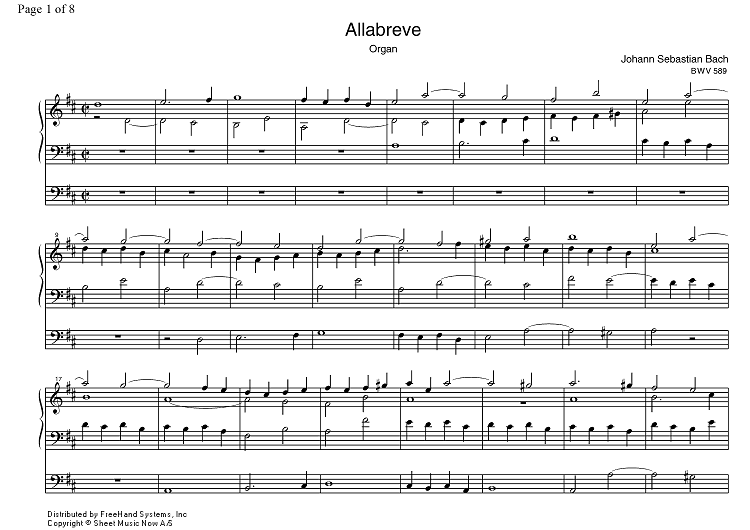 Digital Sheet Music for Allabreve BWV 589 by Johann Sebastian Bach scored for Organ Solo; id:330924