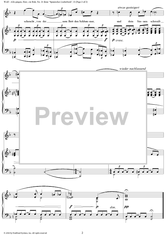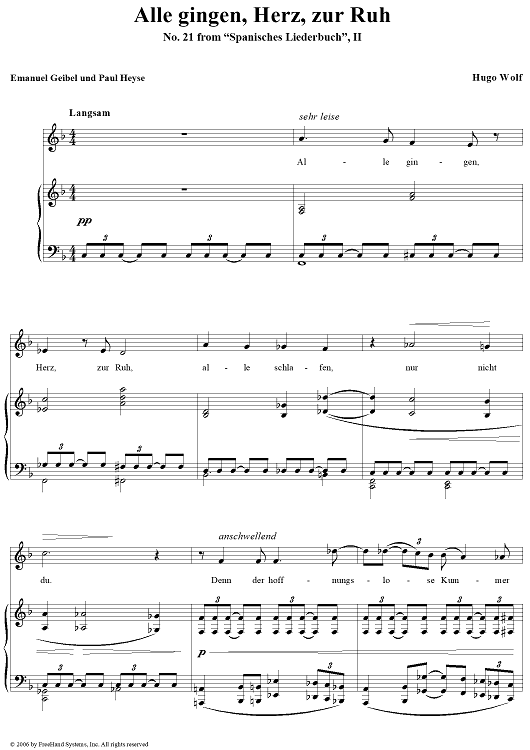 Digital Sheet Music for Alle gingen, Herz, zur Ruh, No. 21 from "Spanisches Liederbuch" II by Emanuel Geibel, Hugo Wolf, Paul Heyse scored for Voice/Piano; id:318815