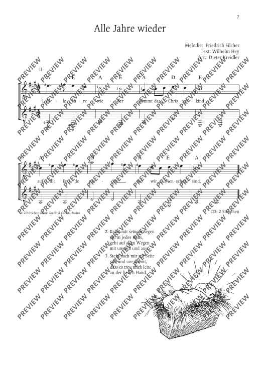 Digital Sheet Music for Alle Jahre wieder by Dieter Kreidler scored for 1-3 Guitars (melody Instruments In C Ad Lib.); id:481735