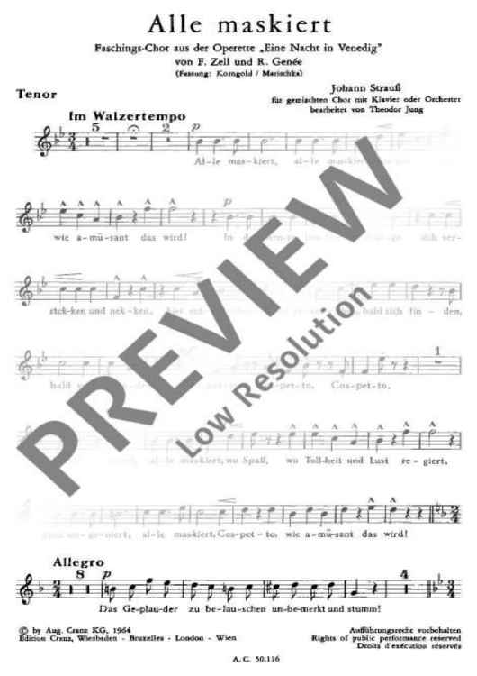 Digital Sheet Music for Alle maskiert - Tenor by Theodor Jung, Johann Strauß (Son) scored for Mixed Choir (satb) And Piano; id:478865