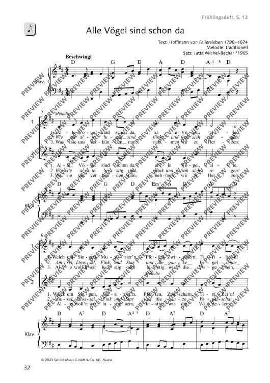 Digital Sheet Music for Alle Vögel sind schon da by Jutta Michel-Becher, Traditionell scored for For Two Part Choir And Piano; id:500001