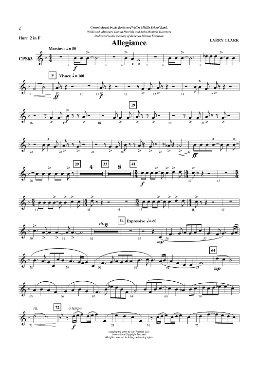 Digital Sheet Music for Allegiance - Horn in F 2 by Larry Clark scored for Concert Band; id:407157