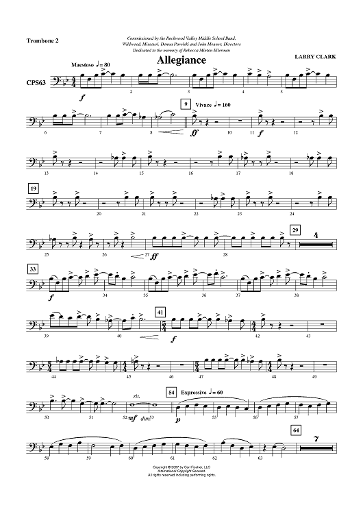 Digital Sheet Music for Allegiance - Trombone 2 by Larry Clark scored for Concert Band; id:407159
