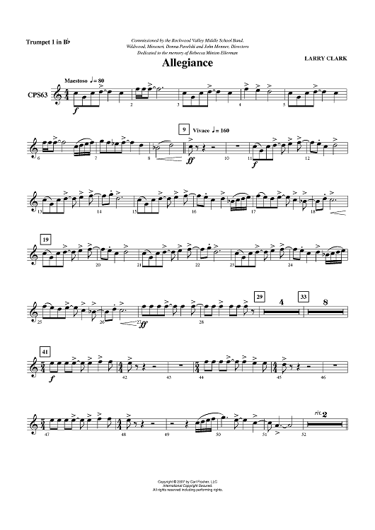 Digital Sheet Music for Allegiance - Trumpet 1 in B-flat by Larry Clark scored for Concert Band; id:407153
