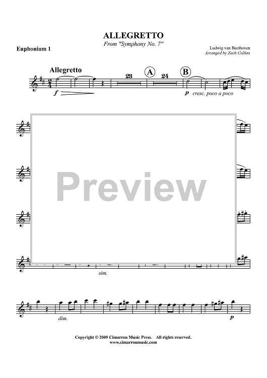 Digital Sheet Music for Allegretto - Euphonium 1 by Ludwig van Beethoven, Zach Collins scored for Tuba Ensemble; id:409944