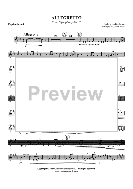 Digital Sheet Music for Allegretto - Euphonium 4 by Ludwig van Beethoven, Zach Collins scored for Tuba Ensemble; id:409947