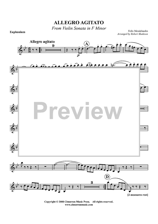 Digital Sheet Music for Allegro Agitato - from Violin Sonata in F Minor - Euphonium BC/TC by Felix Mendelssohn, Robert Madeson scored for Euphonium/Piano; id:416920