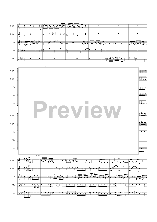 Digital Sheet Music for Allegro and Fugue from Oboe Concertos 1 and 2 - Score by George Frideric Handel, Thomas J. Blackwell scored for Brass Quintet; id:312409