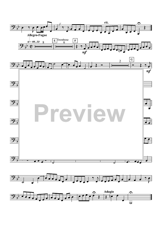 Digital Sheet Music for Allegro and Fugue from Oboe Concertos 1 and 2 - Tuba by George Frideric Handel, Thomas J. Blackwell scored for Brass Quintet; id:312414