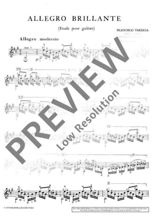 Digital Sheet Music for Allegro Brillante by Francisco Tárrega scored for Guitar; id:476464